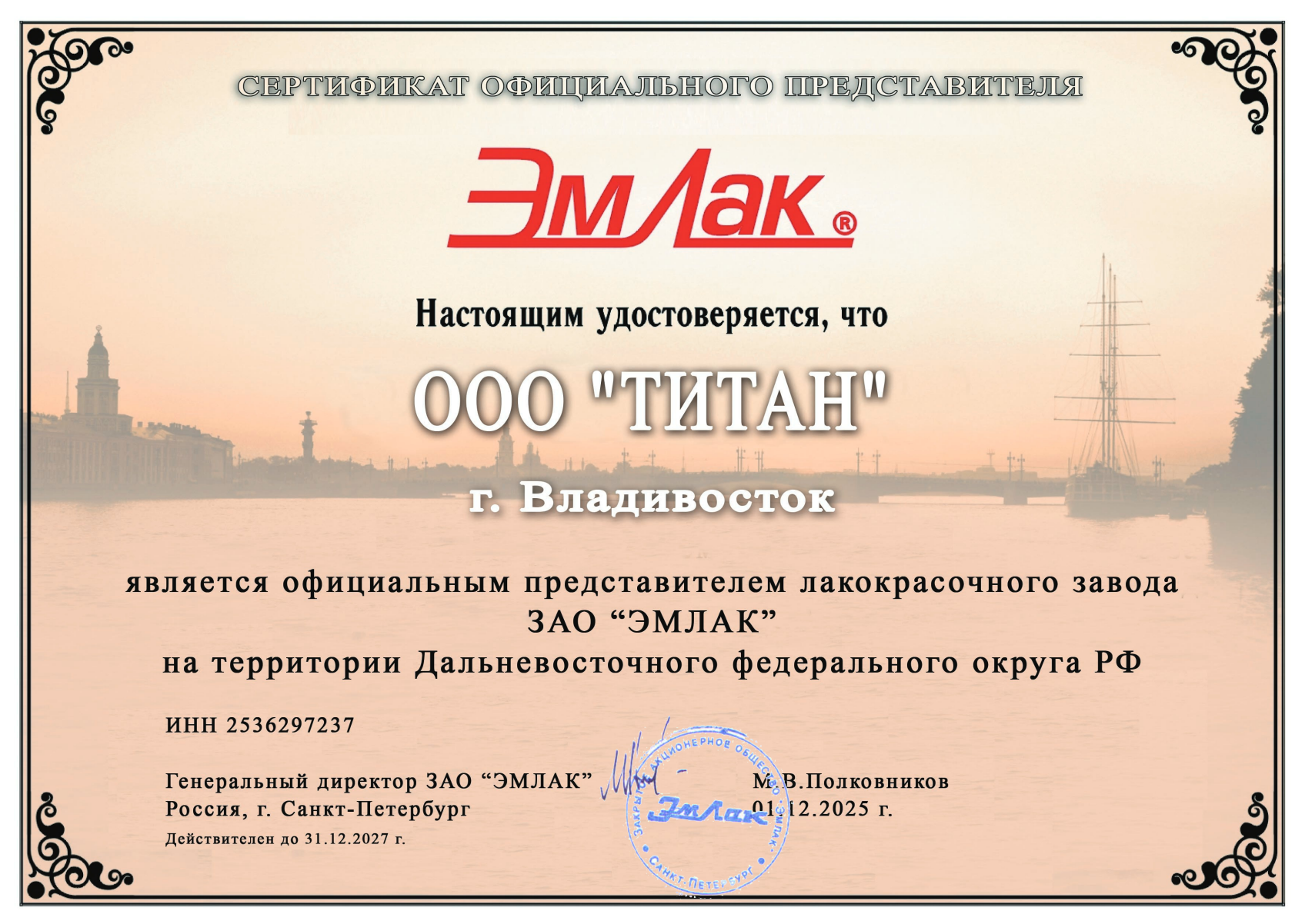Сертификаты официального дистрибьютора